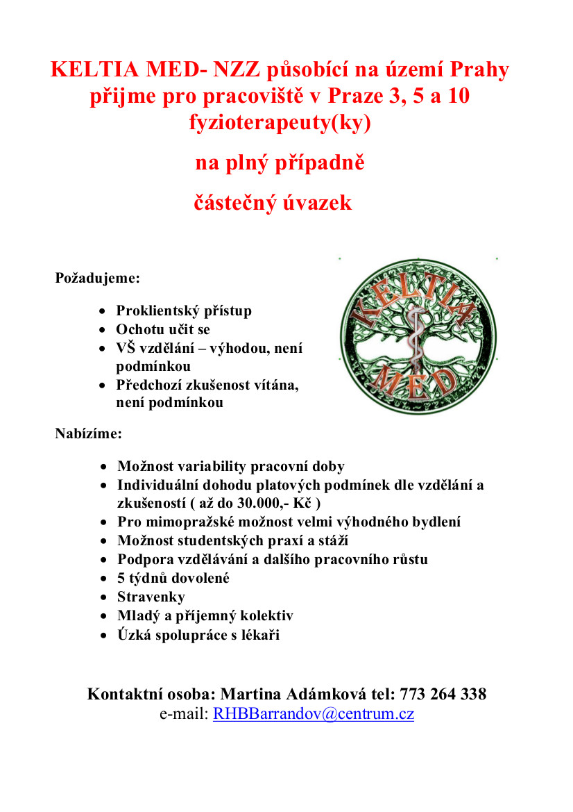 Úvod / Kariéra / KELTIA MED- NZZ působící na území Prahy přijme pro pracoviště v Praze 3, 5 a 10 fyzioterapeuty(ky) KELTIA MED- NZZ působící na území Prahy přijme pro pracoviště v Praze 3, 5 a 10 fyzioterapeuty(ky)