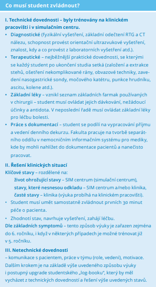 o charakteru výuky v klinických ročnících na podkladě kritiky zaznívající z řad studentů. Studenti poukazují zejména na absenci praktických dovedností. Lékařské fakulty se snaží na tento